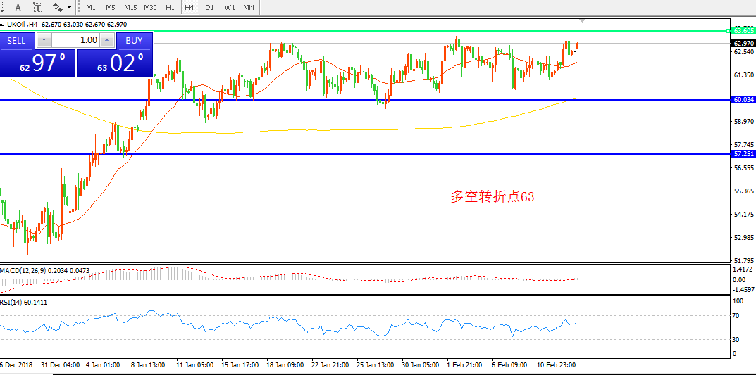 交易策略:在63.00之下看跌,目标60.00    58.00