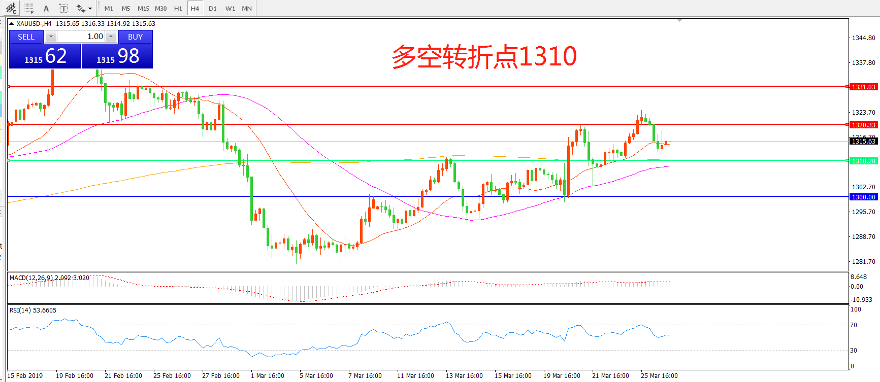 交易策略:在1310.00之上看涨,目标1320.00 1330.00