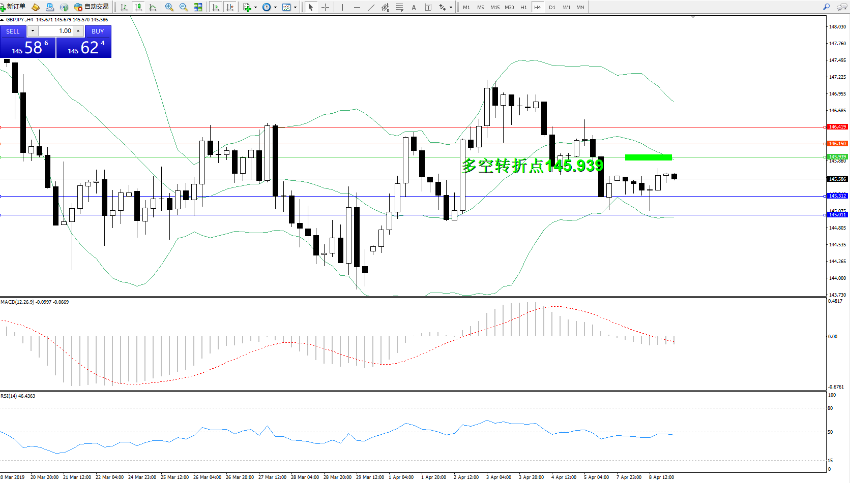 交易策略:145.939下方看跌,目标145.312、145.011