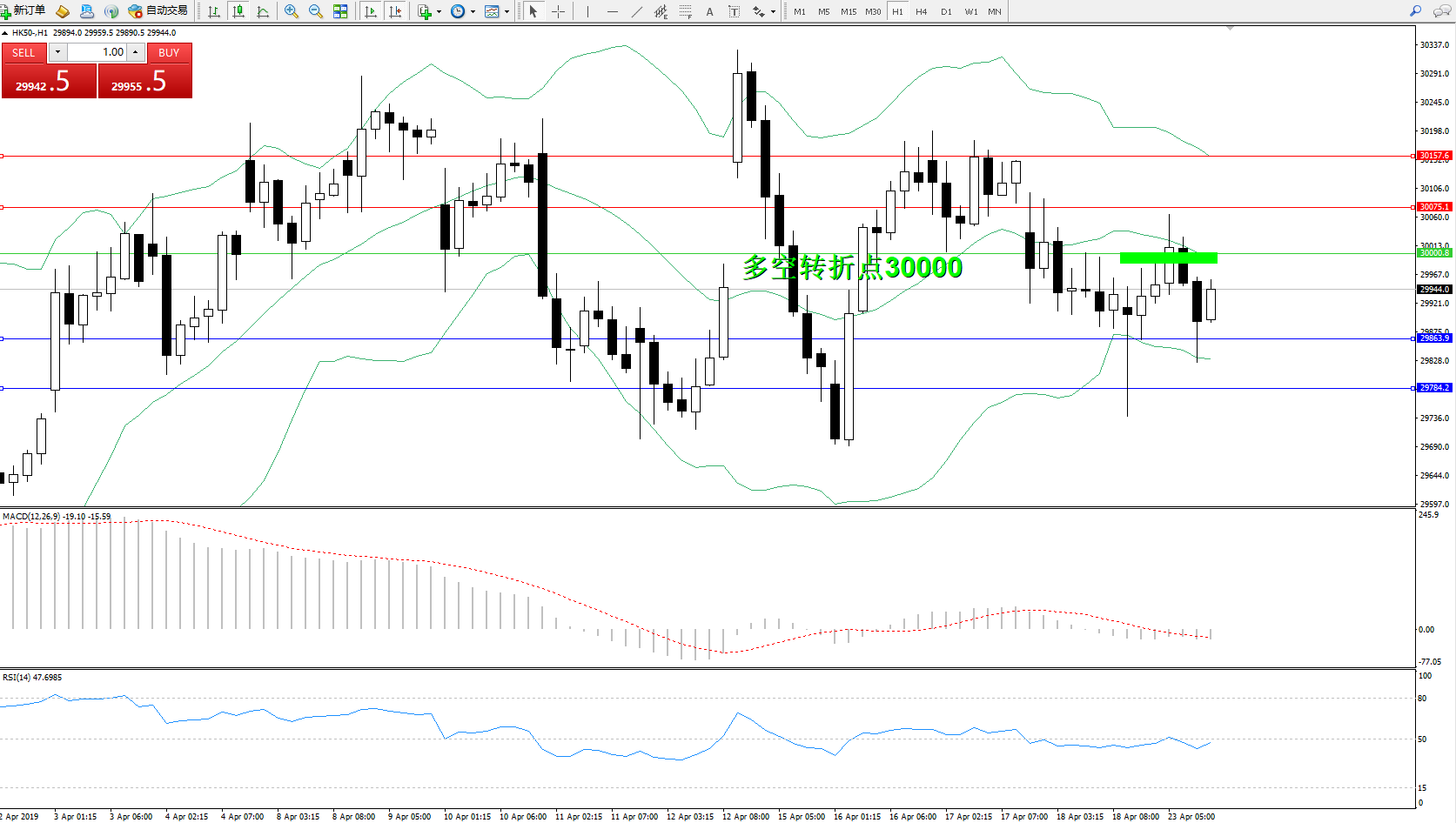 恒指HK50 ——1小时K线图显示: