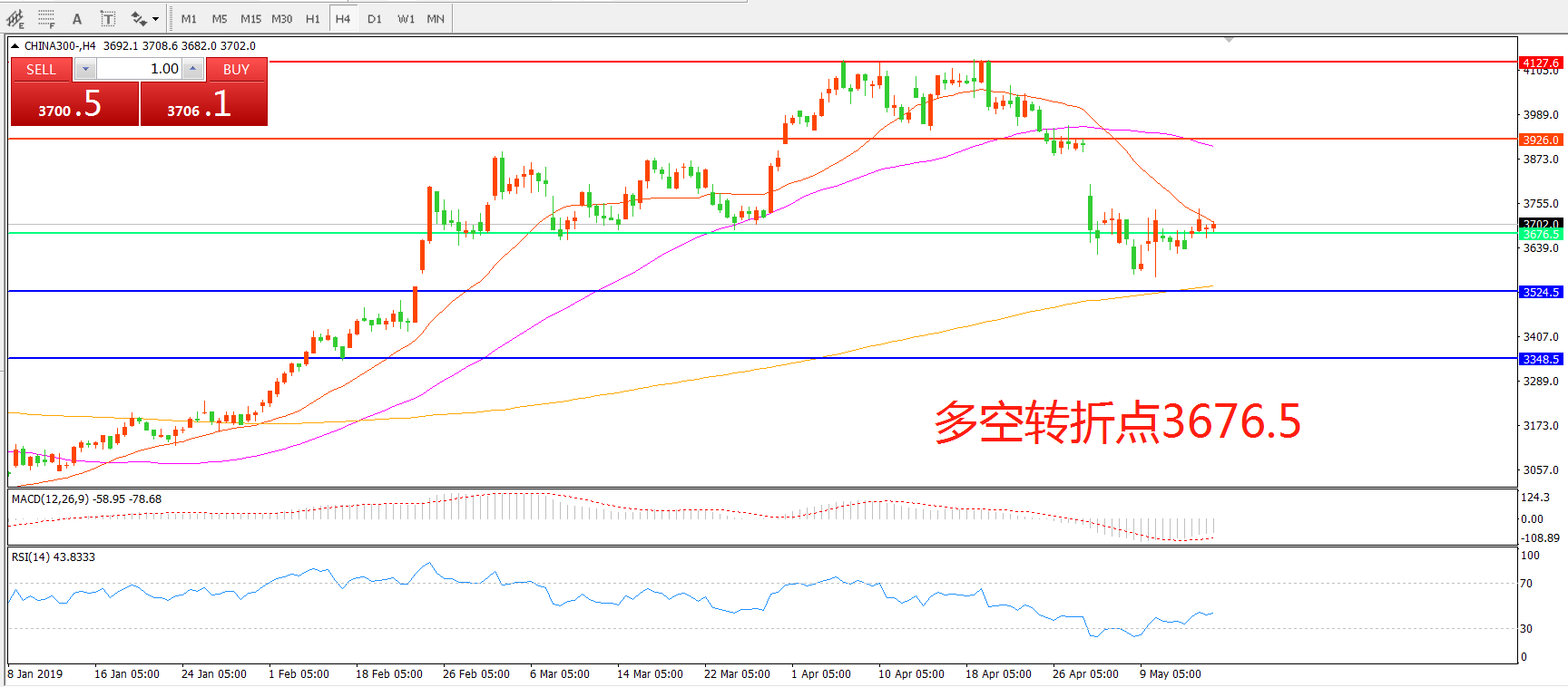 多空转折点:3676.50