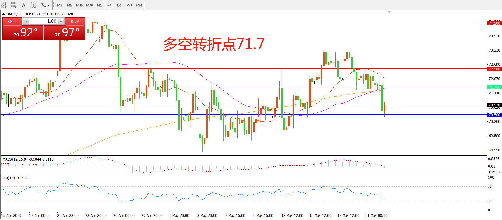 交易策略:在71.70之下看跌,目标70.50 68.50