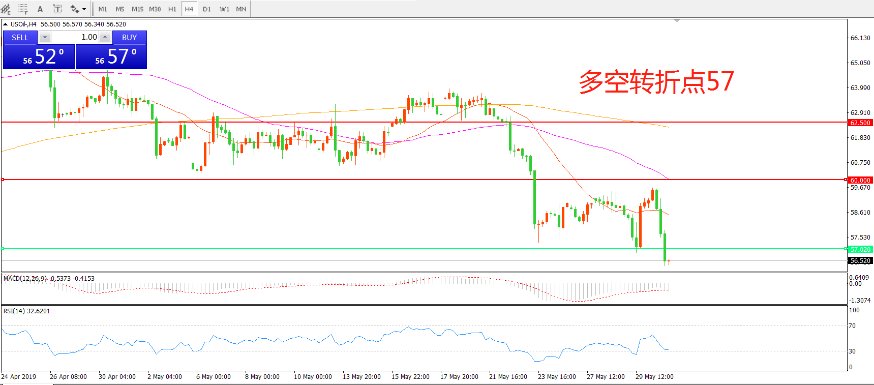 北京时间周四(5月30日)23:00,EIA数据公布,截至5月24日当周,美国原油库存减少28.2万桶至4.765亿桶,市场预估为减少85.7万桶。与此同时,美国原油产量依旧持续增长。受此影响,美国WTI原油价格重挫4.08%,收报56.54美元/桶。欧佩克及其合作伙伴在限制原油产能方面的优柔寡断,地缘政治的动荡给原油的基本面蒙上了一层阴影。