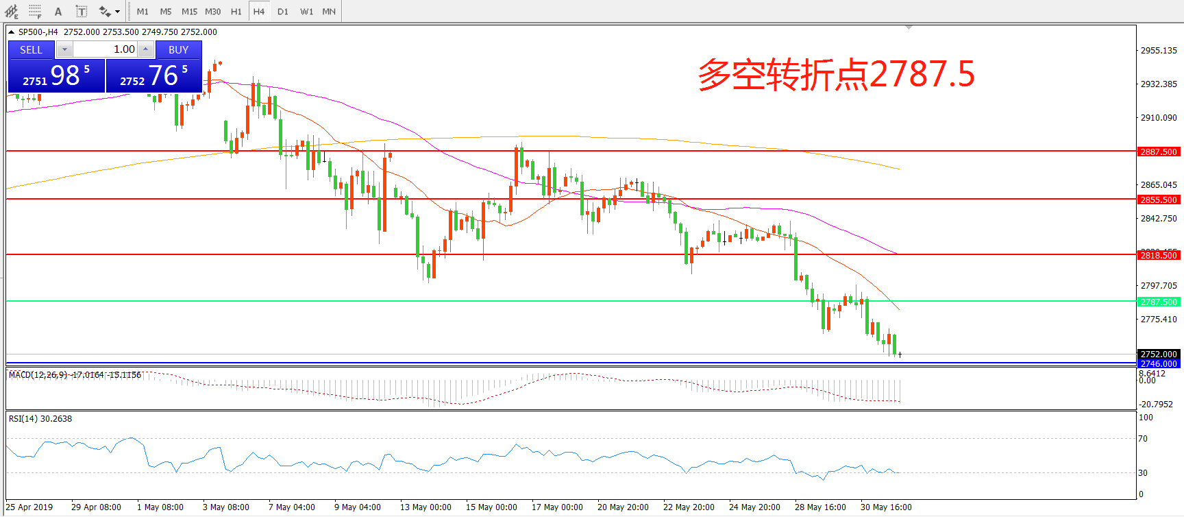 多空转折点:2787.50