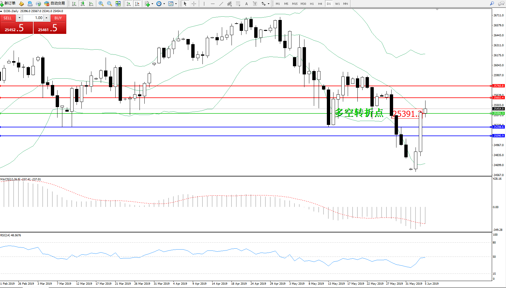 道琼斯指数DJ30—— 日K线图显示: