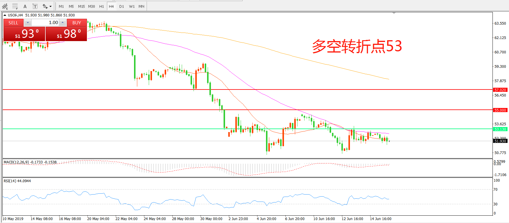 上周阿曼湾两艘油轮遇袭后中东紧张局势加剧,油价跌幅受到一定限制。美国将袭击归咎于伊朗,但伊朗予以否认。因市场担忧贸易紧张局势以及糟糕的经济数据,自4月份触及2019年高点以来,油价已经下跌了20%左右。而目前伊朗和俄罗斯未能就石油输出国组织(OPEC)政策会议时间达成一致,这令原油供应不确定性攀升。 美国WTI原油震荡收跌,最终收报51.93美元/桶。