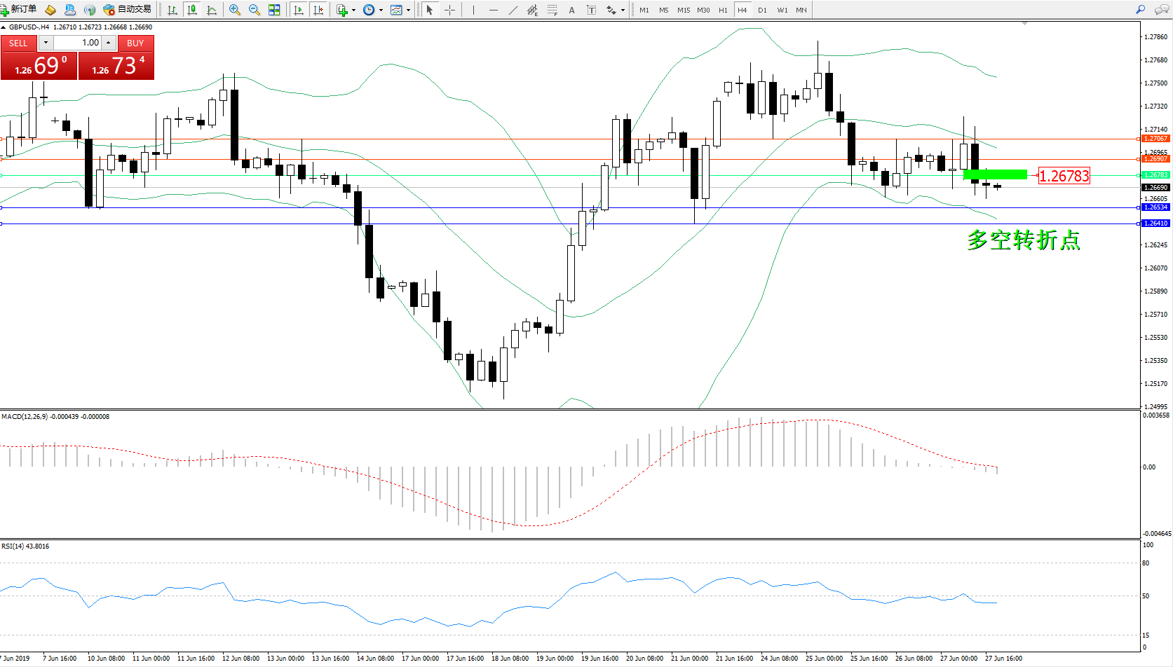 交易策略:1.26783下方看跌,目标1.265341.26410