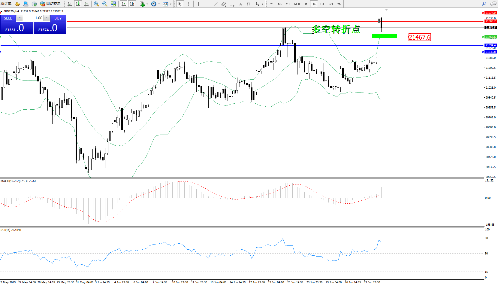 日经225指数6月28日(周五)收盘下跌108.67点,跌幅0.51%,报21229.50点。日本首相安倍晋三:G20同意引领全球经济增长,如有必要将采取进一步行动,明确确认了自由、公平、非歧视贸易的必要性,世界经济因贸易和其他问题面临的下行风险仍然存在,G20可以在气候变化问题上寻求共识。