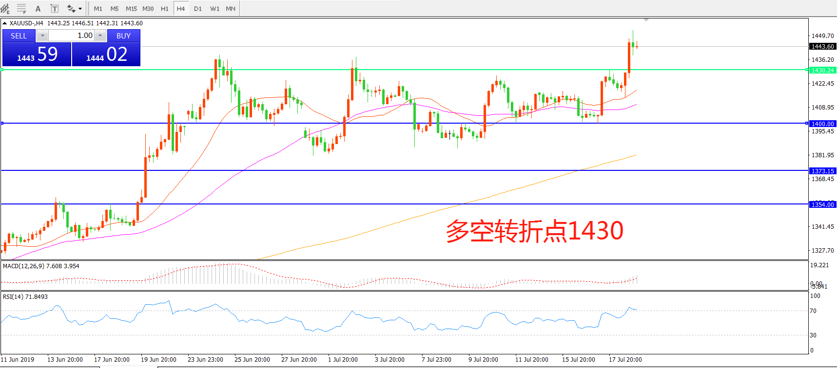 交易策略:在1430.00之上看涨,目标1450.00   1500.00
