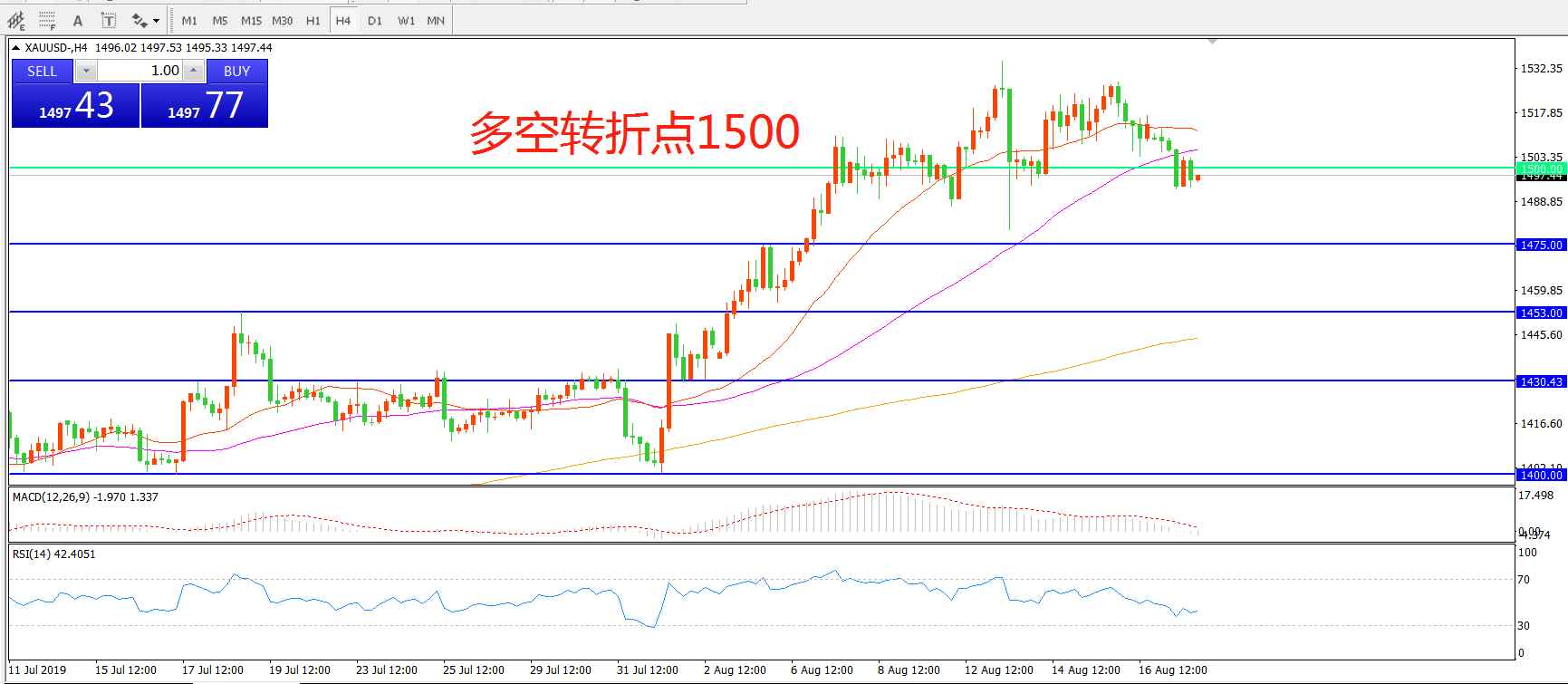 备选策略:在1500.00之下看跌,目标1475.00 1453.00