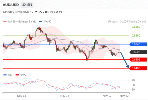 在 0.6540 之下,看跌,目标价位为 0.6505 ,然后为 0.6485 。