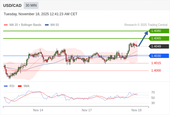 在 1.4030 之上,看涨,目标价位为 1.4065 ,然后为 1.4080 。