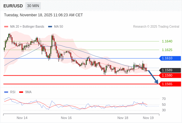 交易策略: 在 1.1610 之下,看跌,目标价位为 1.1580 ,然后为 1.1565 。