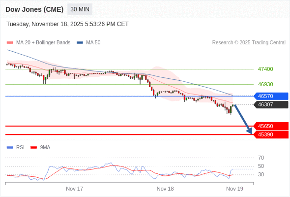 在 46570 之下,看跌,目标价位为 45650 ,然后为 45390 。