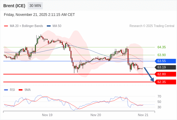在 63.55 之下,看跌,目标价位为 62.80 ,然后为 62.35 。