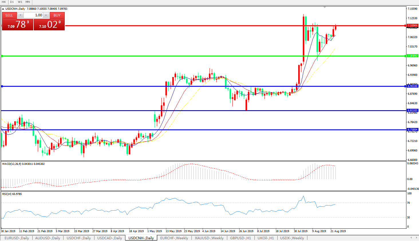 技术面简析:日图均线整体呈攻势,汇价延续高位整理态势偏强,MACD运行在0轴上方且动能充足,RSI大幅下行后逐步走升,预计汇价将维持高位整理,不排除进一步上行可能,但空间有限;但需警惕中美贸易谈判及近期的杰克逊霍尔会议最新结果,关注日内美联储主席讲话。
