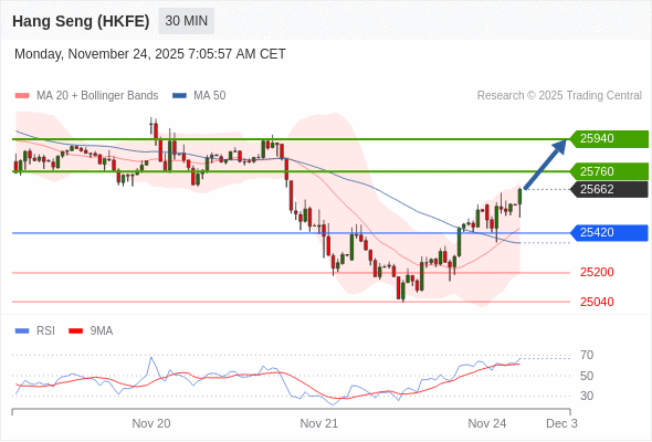 在 25420 之上,看涨,目标价位为 25760 ,然后为 25940 。