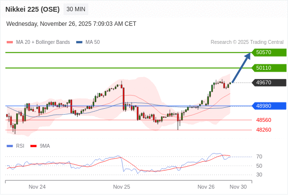 在 48980 之上,看涨,目标价位为 50110 ,然后为 50570 。