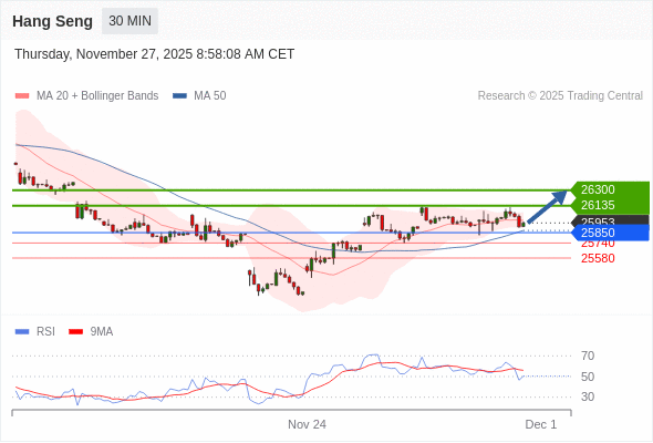 在 25850 之上,看涨,目标价位为 26135 ,然后为 26300 。