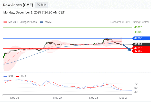 在 47790 之下,看跌,目标价位为 47310 ,然后为 47180 。