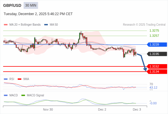 英镑/美元 当日内 : 看跌,在 1.3228 之下。