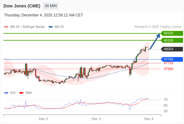 在 47790 之上,看涨,目标价位为 48190 ,然后为 48335 。
