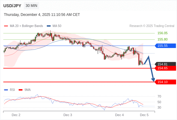 在 155.55 之下,看跌,目标价位为 154.65 ,然后为 154.10 。