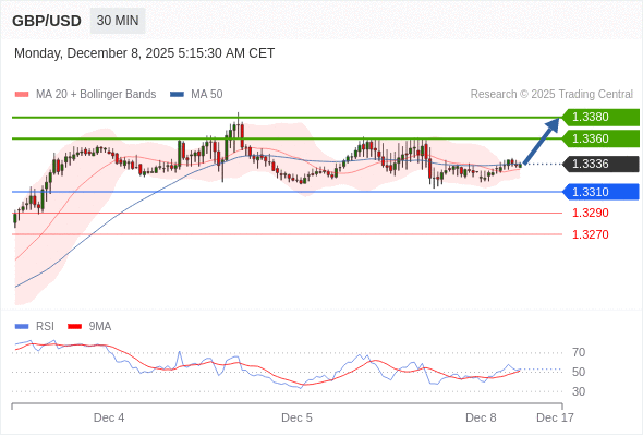 在 1.3310 之上,看涨,目标价位为 1.3360 ,然后为 1.3380 。