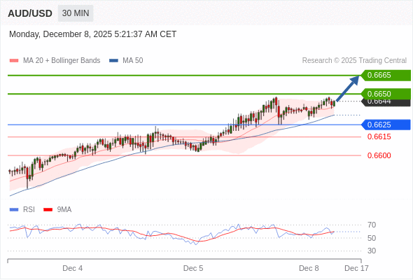 在 0.6625 之上,看涨,目标价位为 0.6650 ,然后为 0.6665 。