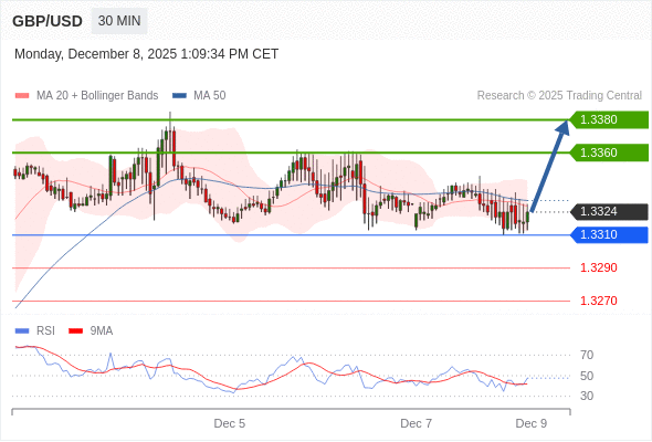在 1.3310 之上,看涨,目标价位为 1.3360 ,然后为 1.3380 。