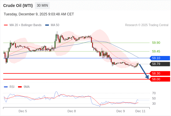 在 59.10 之下,看跌,目标价位为 58.30 ,然后为 58.00 。