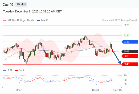 Cac 40 当日内: 短期关键阻力位在8136。