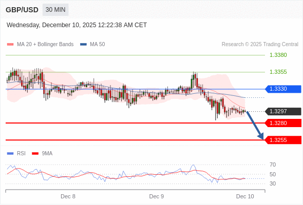在 1.3330 之下,看跌,目标价位为 1.3280 ,然后为 1.3255 。