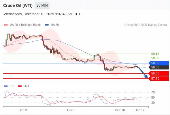 在 58.60 之下,看跌,目标价位为 58.00 ,然后为 57.70 。