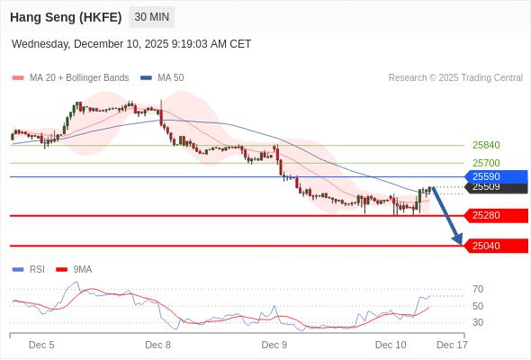 在 25590 之下,看跌,目标价位为 25280 ,然后为 25040 。
