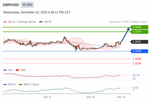 英镑/美元 当日内 : 看涨,当 1.3289 为支撑位。