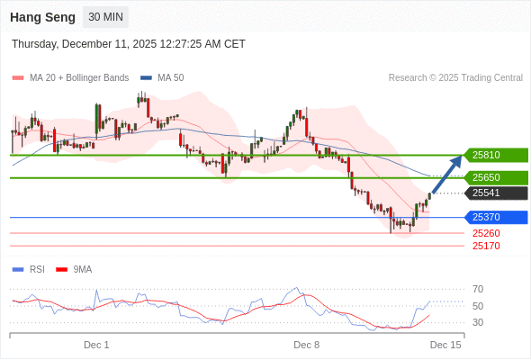 在 25370 之上,看涨,目标价位为 25650 ,然后为 25810 。