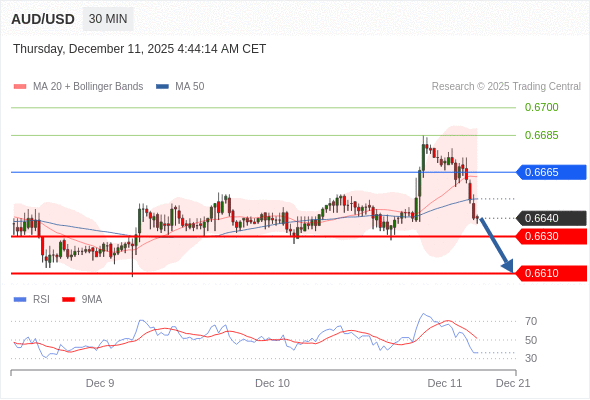 在 0.6665 之下,看跌,目标价位为 0.6630 ,然后为 0.6610 。