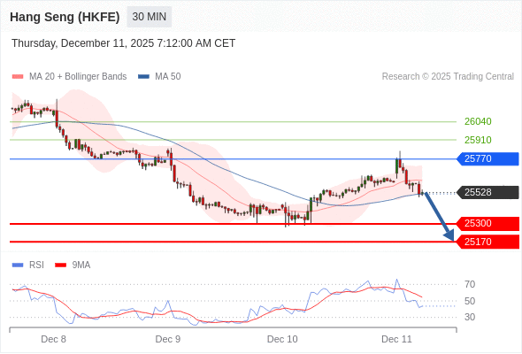 在 25770 之下,看跌,目标价位为 25300 ,然后为 25170 。