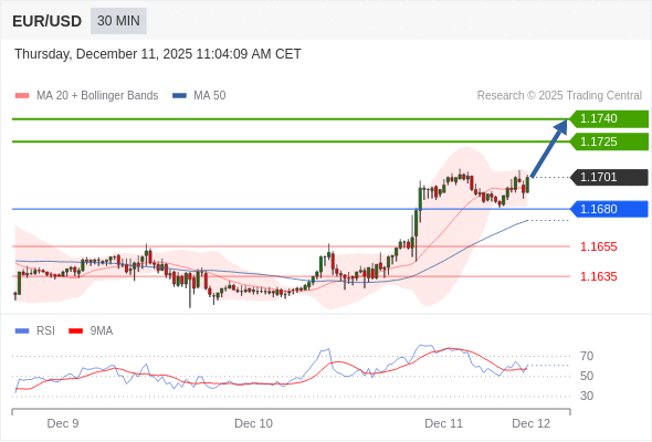 在 1.1680 之上,看涨,目标价位为 1.1725 ,然后为 1.1740 。