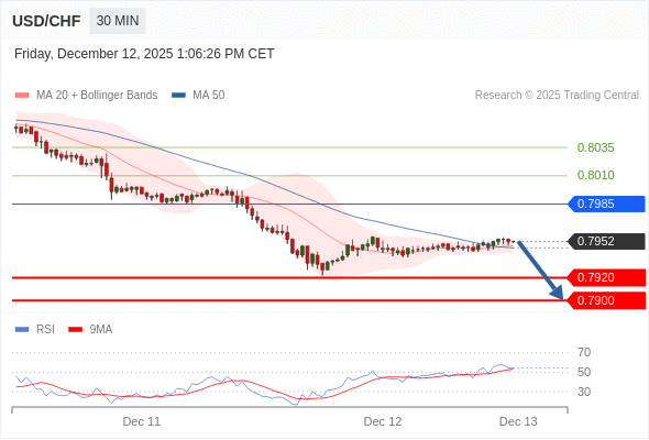 交易策略: 在 0.7985 之下,看跌,目标价位为 0.7920 ,然后为 0.7900 。