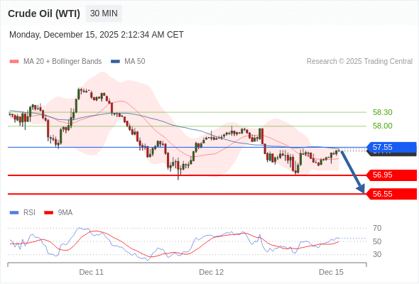在 57.55 之下,看跌,目标价位为 56.95 ,然后为 56.55 。