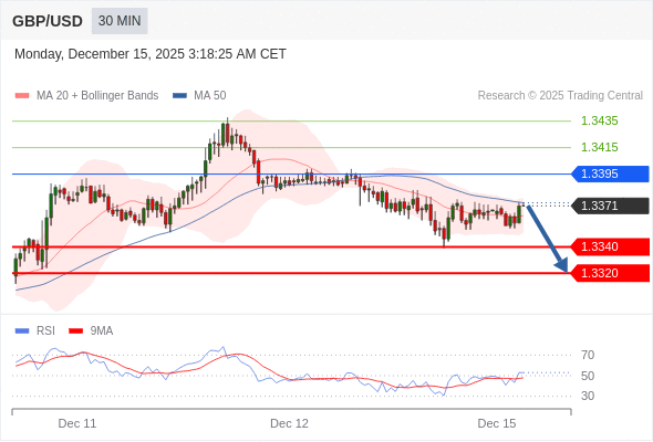 在 1.3395 之下,看跌,目标价位为 1.3340 ,然后为 1.3320 。
