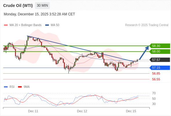 在 57.15 之上,看涨,目标价位为 58.00 ,然后为 58.30 。