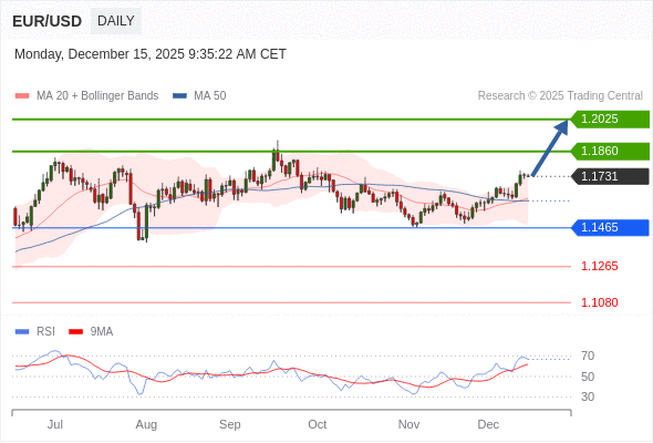在 1.1465 之上,看涨,目标价位为 1.1860 ,然后为 1.2025 。