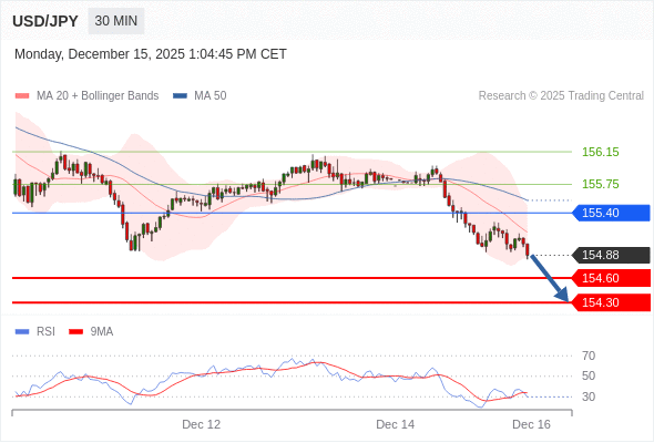 在 155.40 之下,看跌,目标价位为 154.60 ,然后为 154.30 。