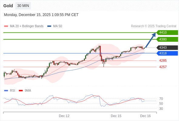 在 4318 之上,看涨,目标价位为 4380 ,然后为 4410 。