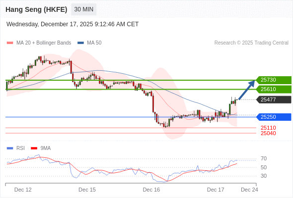 在 25250 之上,看涨,目标价位为 25610 ,然后为 25730 。