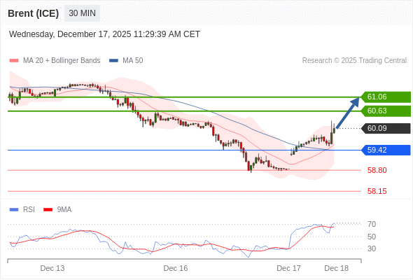 交易策略: 在 59.42 之上,看涨,目标价位为 60.63 ,然后为 61.06 。