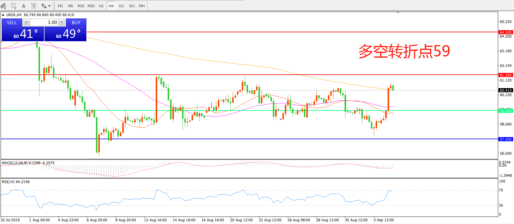 交易策略:在59.00之上看涨,目标61.50   64.50